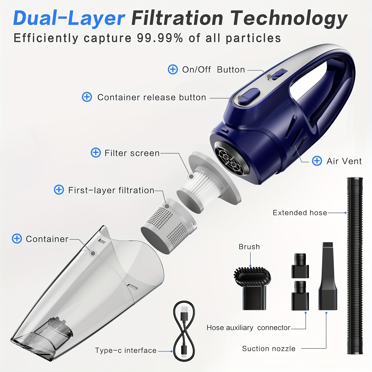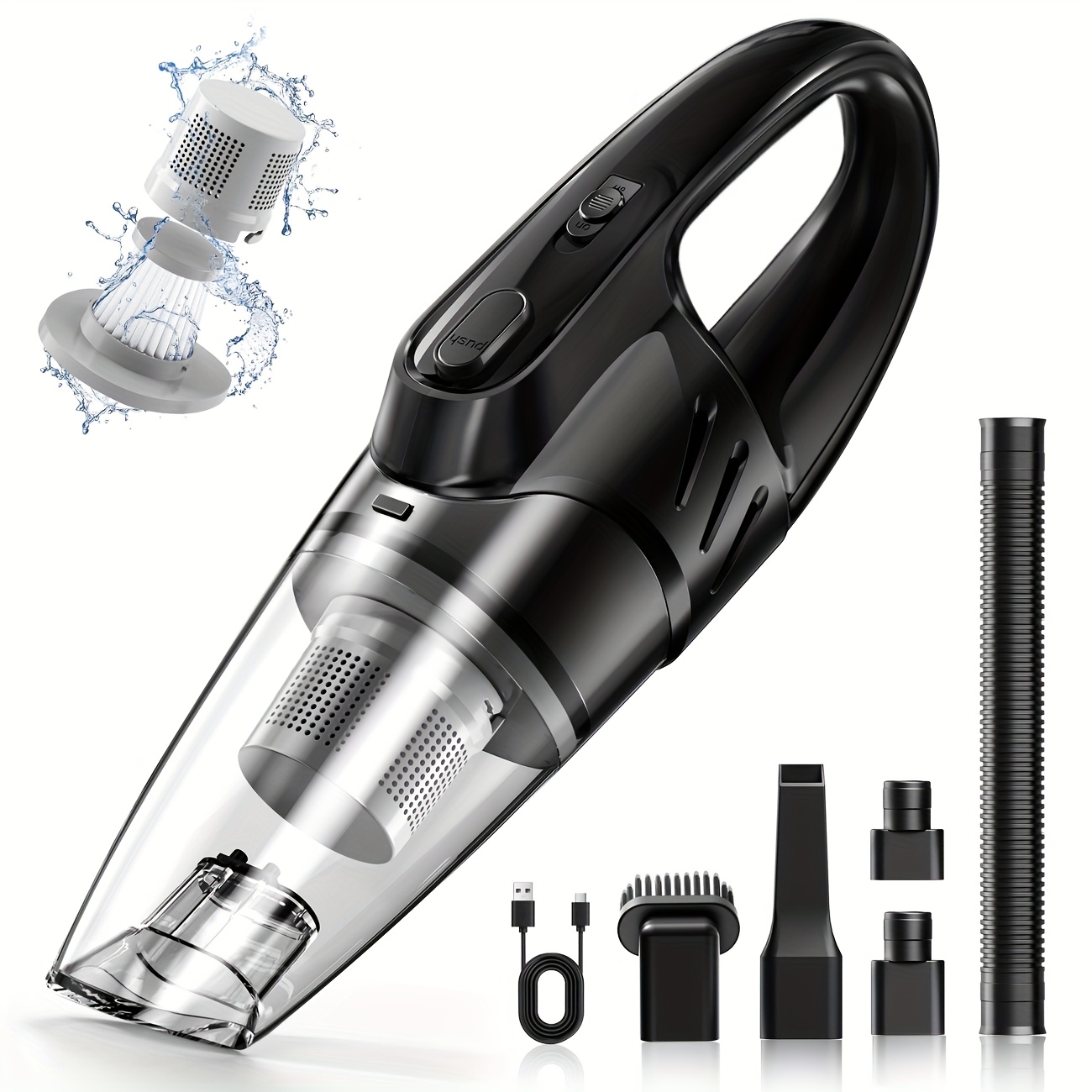 Car Vacuum Cleaner, 6000PA Super Strong Suction Handheld Vacuum, 2000mAh Large C