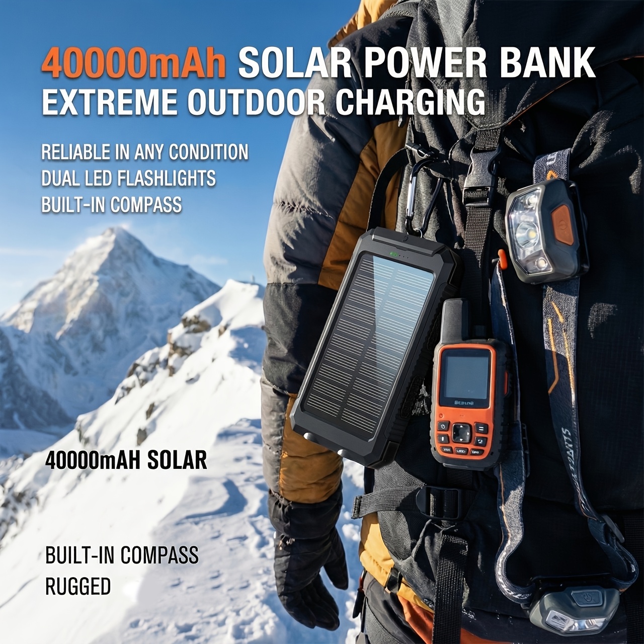 Portable Solar Mobile Phone Charger, Camping External Battery Charger For Mobile Phones, 2 USB/ LED Flashlights With Compass For Outdoor Activities, 20000mAh/40000mAh Portable Solar Power Bank