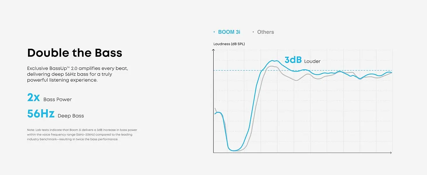 - Double the Bass with BassUp 2.0: Pushes 50W of powerful sound with bass as deep as 56Hz. BassUp 2.0 and DSP tech deliver punchy lows and crisp highs. Serious audio performance in a compact portable speaker.