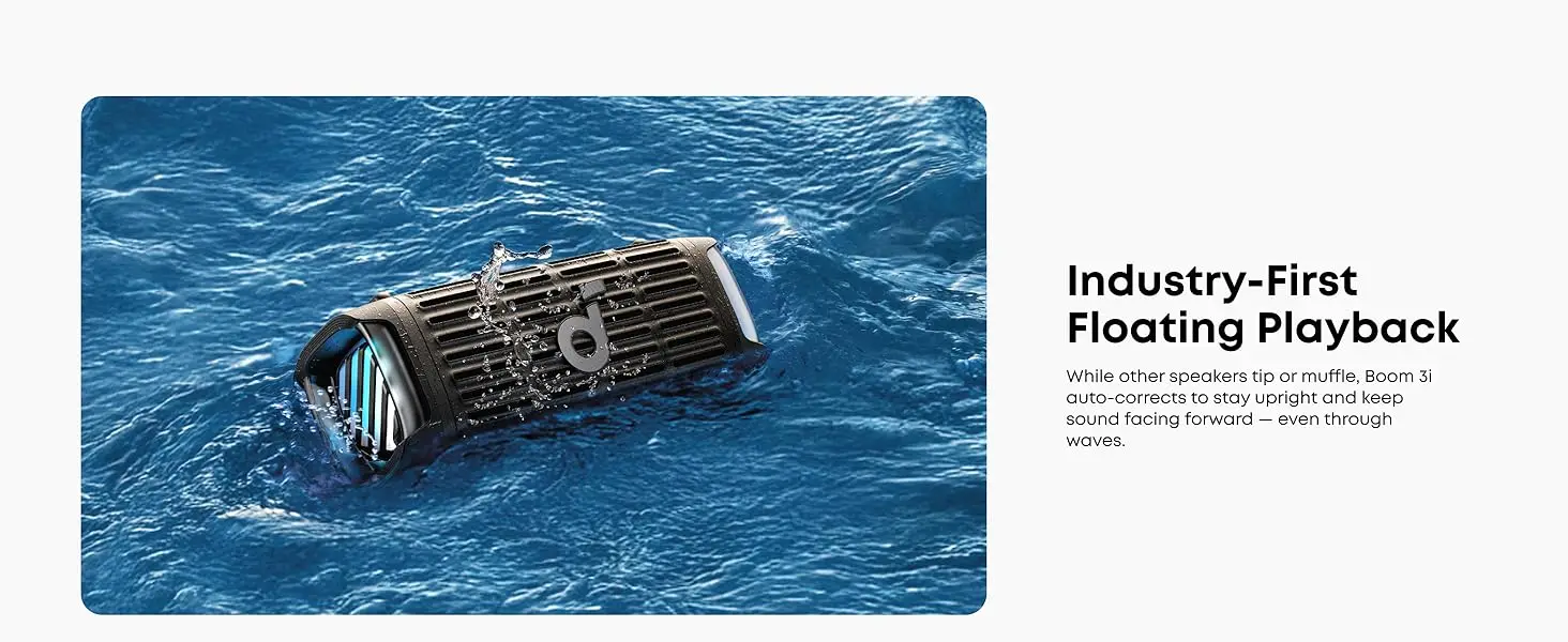 - Industry-First Floating Playback: Stays upright and sound-forward, even in waves. No distortion, no sinking—just loud, clear audio for kayaking, pool parties, and every water adventure.