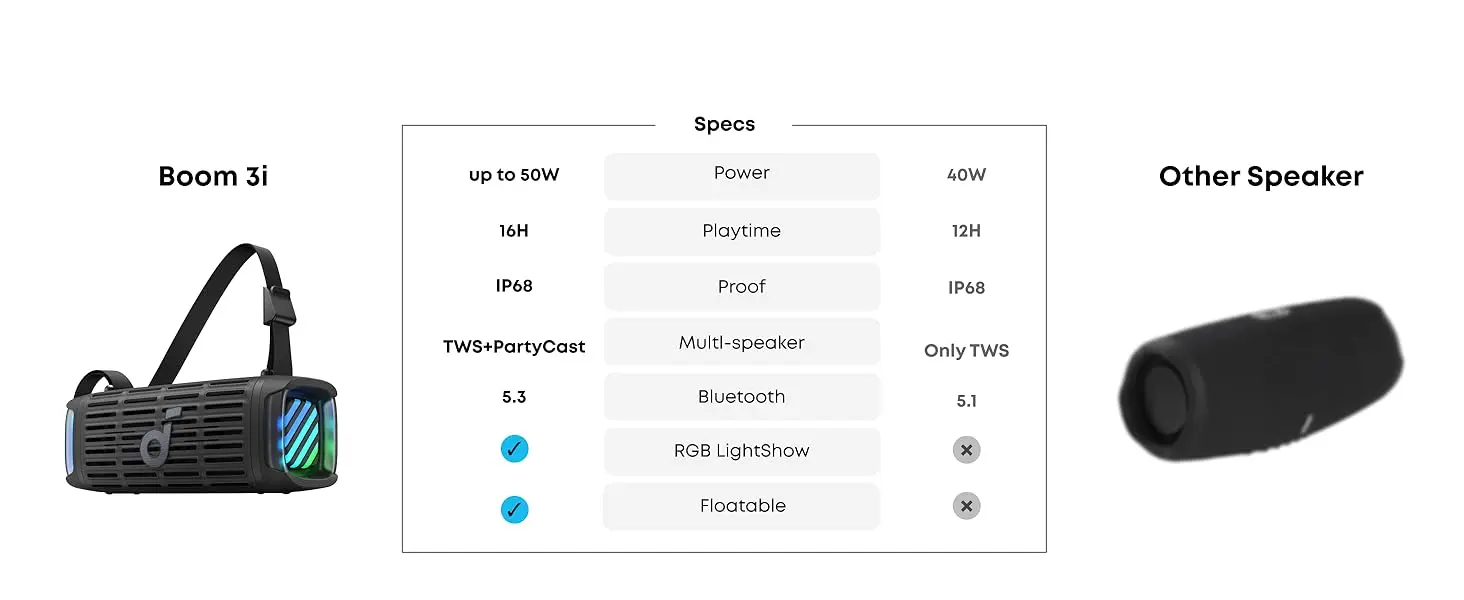 - Compact Water‑Bottle Size for Portability: About the size of a water bottle, Boom 3i slips into your backpack, clips to your gear, and fits comfortably in one hand for grab‑and‑go adventures.
